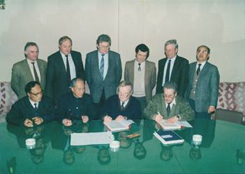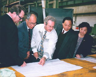 (1992年1月23日,郁铭芳(左二)参加德国吉玛公司聚酯项目设备引进合同签字仪式) 5月8日,经上海化纤公司批准,担任上海纺织涤纶公司总工程师。 9月21日至10月6日,参加上海化纤公司组织的涤纶7万吨聚酯切片项目考察组,赴德国、西班牙、奥地利参观考察德国吉玛公司、纽马克公司等8家单位,验收引进设备情况。