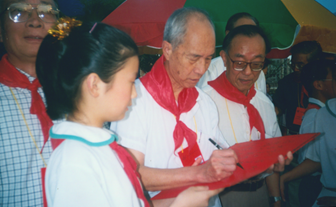 (1999年,郁铭芳参加宁波院士行活动时给小学生签名) 2000年 1月,在《合成纤维》发表“化学纤维的发展前景”的文章。 9月19至21日,参加由国家经贸委和中国工程院联合组织的“上海石化股份有限公司技术创新院士行”活动,应邀做题为“碳纤维原丝聚丙烯腈长丝研究”专题报告。
