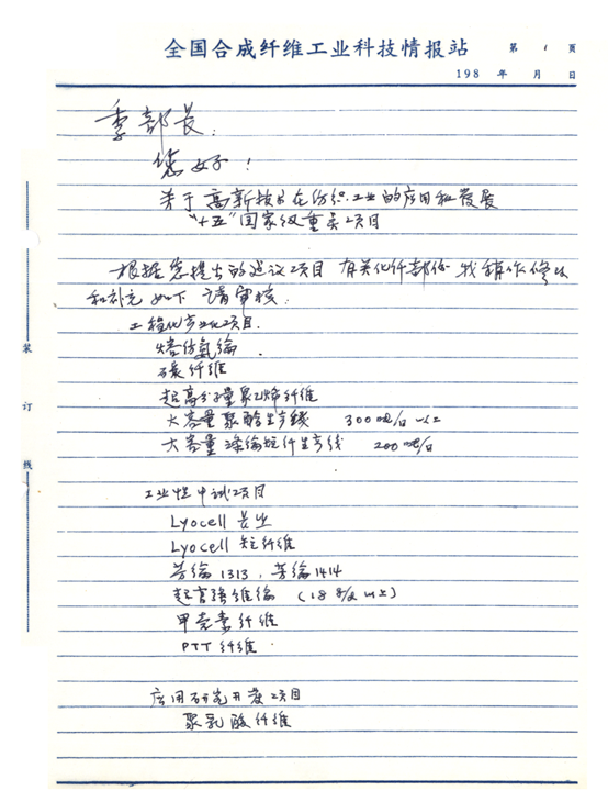 (1979年5月26日,郁铭芳关于提高碳纤维强度的情况汇报手稿) 1980年 11月11日至12月11日,参加联合国工业发展组织安排的纺织工业部涤纶长丝纺丝和变形技术考察小组,赴美国参观杜邦公司、孟山都公司、塞拉尼斯公司、纽约理工学院、麻省理工学院和费城纺织学院。考察组认为高速纺丝技术已成为涤纶长丝主要生产工艺路线。 12月11日,经上海纺织工业局批准,任上海合成纤维研究所所长兼总工程师。