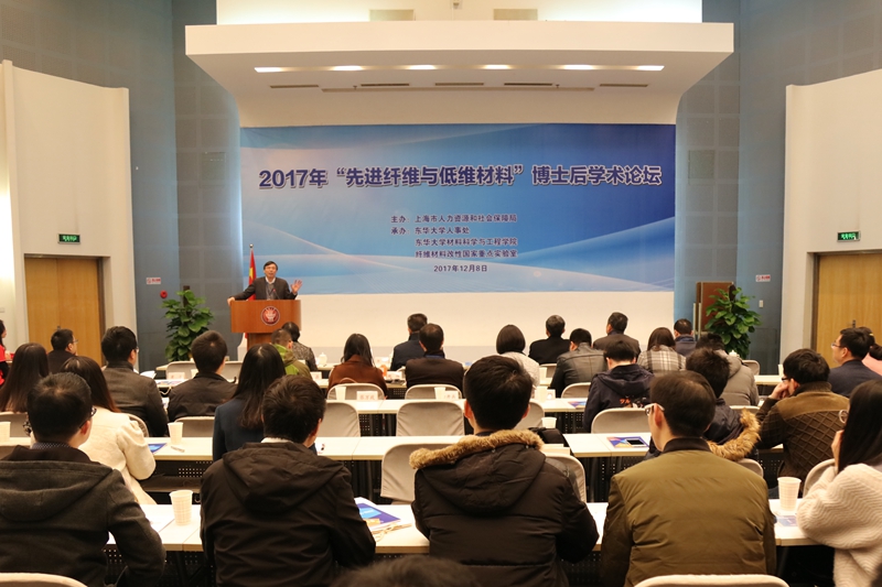 12月8日,“先进纤维与低维材料”博士后学术论坛在我校松江校区举办。本次论坛由上海市人力资源和社会保障局主办,我校人事处、材料学院、纤维材料改性国家重点实验室共同承办。我校副校长卿凤翎出席论坛开幕式。上海市人力资源和社会保障局专业技术人员管理处、我校材料学院、人事处有关负责人,兄弟高校专家,相关领域青年教师、博士后研究人员和有意向从事博士后工作的高年级博士生以及兄弟单位的博士后工作管理人员参加论坛。