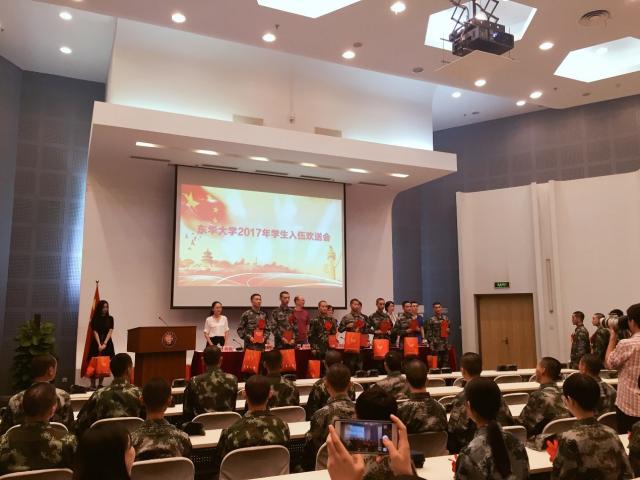 2017年9月18日,材料学院七名本科生光荣入伍,参加新葡的京集团35222vip2017年学生入伍欢送会。我院党委书记戴蓉老师代表学院,慰问新兵。