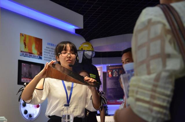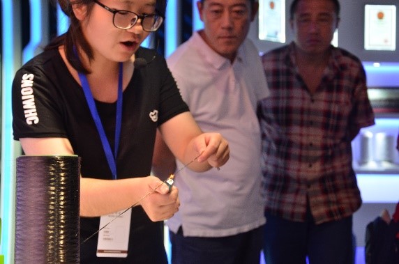 讲解员们先为大家介绍了重点实验室的科研历史和科研地位,使大家初步了解了材料学院在服务传统化学纤维工业升级改造中发挥着生力军的作用,随后又介绍了成果展示室中陈列的涤纶、锦纶、碳纤维等纤维材料,并表示学院开展了在通用纤维材料多功能、纳米结构纤维、低维材料结构调控与功能化的研究,并攻克了多项行业共性核心技术。以及通过例举生活中简单易懂的列子详细的介绍了聚乙烯缆绳,防弹衣,隔热消防服等等成果背后的科技含量,让大家感受到了科学的魅力。