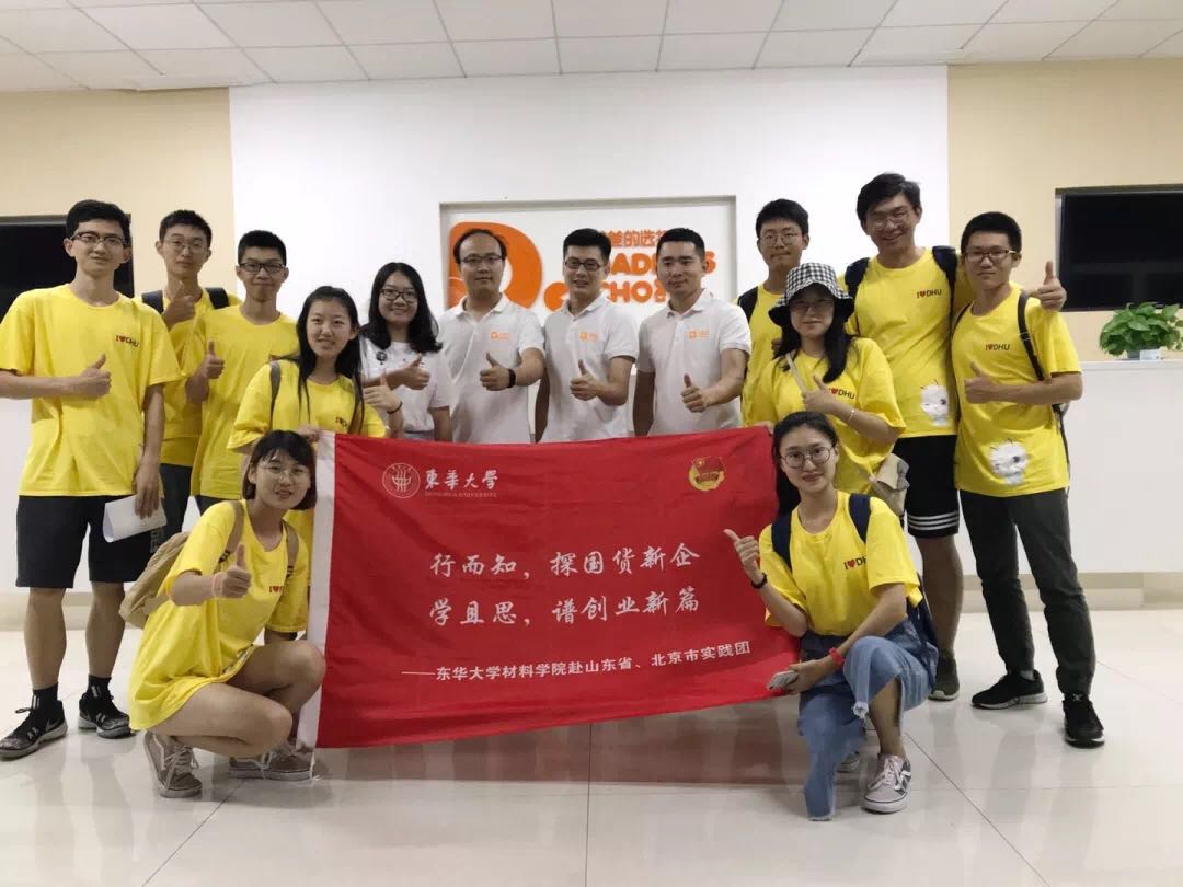 2018年7月,由新葡的京集团35222vip团委书记吴佳老师带队,与10名有创业意向的材料学院本科生一同前往山东省、北京市开展了以“行而知,探国货新企,学且思,谱创业新篇”为主题的暑假调研实践活动。