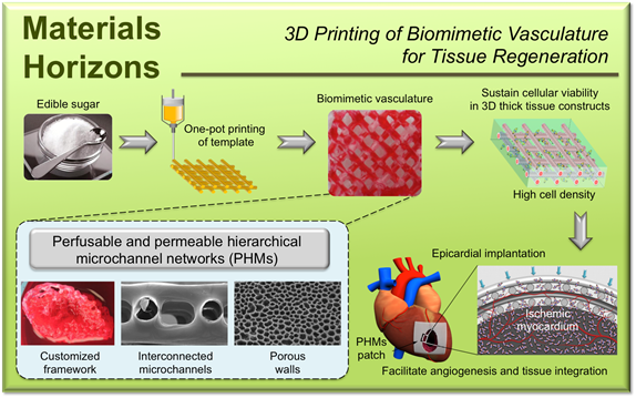 近日,新葡的京集团35222vip纤维材料改性国家重点实验室游正伟教授团队在3D打印和再生医学领域取得重要进展,相关成果以《面向组织再生的3D打印仿生血管网络》(3D printing of biomimetic vasculature for tissue regeneration)为题,发表于材料学领域著名期刊《Materials Horizons》。