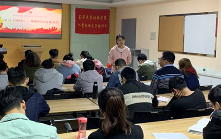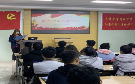 开班仪式第一个环节是优秀学员朱丽琼同学作代表发言。她向大家强调了积极分子应有的政治立场、入党动机和学习方向,并代表全体学员向党组织表达了坚定的入党决心、展示了不畏艰难险阻的勇气。