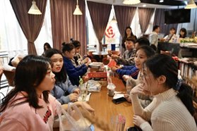 争创单位代表们移步体现材料学院 “文化育人”特色的米兰苑咖啡厅,进行争创小组的课题研讨与团建活动。小组组长、华东师范大学美术学院18级团支书陈晓暘对商讨得出的调研主题及任务分配进行整理,各单位定岗明责,确保任务落实。课题研讨环节结束之后,代表们在团建活动中收获欢乐,也对彼此更加熟悉,无论在之后的交流中还是在工作的开展上,都更加便利。