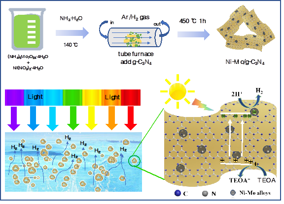 图2 Ni-Mo/g-C3N4光催化剂用于光催化分解水产氢。