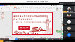 2020年4月19日下午,新葡的京集团35222vip2020年第一学期发展对象培训班依托腾讯会议平台举行线上主题讨论,学员们就《我国国家制度和国家治理体系的显著优势》及《致敬致哀!走近郁铭芳院士》两个主题展开探讨。