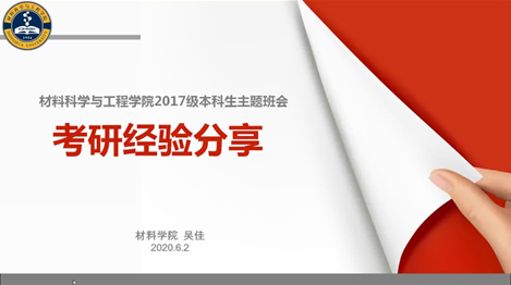 2020年6月2日,新葡的京集团35222vip邀请了7位2020届成功考研的优秀学生,面向材料学院2017级学生开展了一场线上考研经验分享会,共有200余名有考研打算的同学参与,会议由2017级专职辅导员吴佳主持。