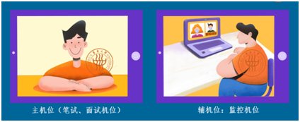 (1)“双机位”及设备要求:考生需要准备可以支持“双机位”运行的设备。主机位为笔试和面试机位,需要具备摄像头、麦克风的电脑(台式机、笔记本、平板电脑)或智能手机,保障视频和音频的传输,进入会议室时需加入视频、音频。辅机位为监控机位,需要带摄像头的智能手机或电脑(台式机、笔记本、平板电脑),保障视频传输,进入会议室时只加入视频。