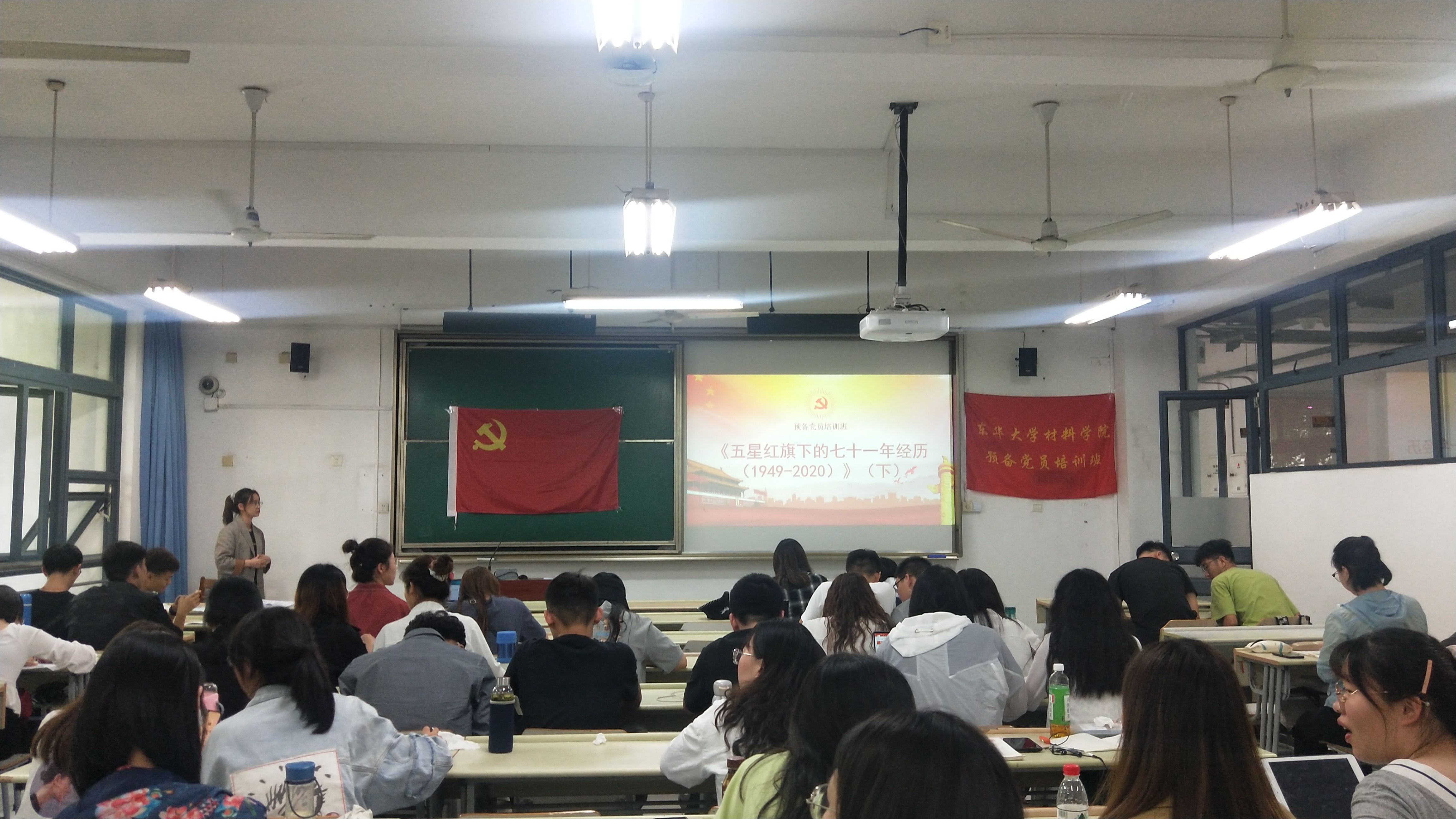 2020年9月20日下午15:00,新葡的京集团35222vip材料学院2020年(下)预备党员培训班党课在庄严的国歌声中于松江校区1117教室隆重举行。由严诚忠教授开讲的《五星红旗下的七十一年经历(1949-2020)》下半场继续开讲。