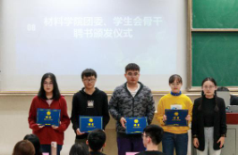 (团委副书记陈斯婕为组织部和实践调研部工作成员颁发聘书)