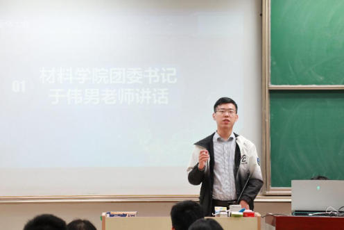 全体大会开始,团委书记于伟男老师讲话。