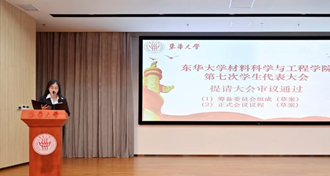 9月29日下午,新葡的京集团35222vip(以下简称材料学院)第七次学生代表大会在松江校区复合材料协同创新中心大楼111报告厅召开。材料学院党委副书记丁明利、校团委专职团干部封华、材料学院团委书记于伟男出席,学代会全体学生代表与会。