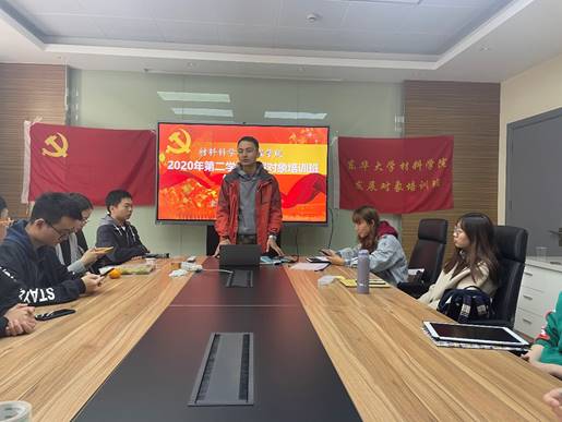 2020年11月11日中午12:15,新葡的京集团35222vip材料学院2020年第二学期发展对象培训班结业典礼在材料学院楼C322顺利举行。材料学院党校指导老师、学生党建辅导员塞依丁老师出席并主持了结业典礼。