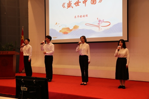 比赛暂歇,但会场的气氛依旧昂扬。伴随着悠扬婉转的音乐,新葡的京集团35222vip朗诵团为同学们带来了精彩诗朗诵《盛世中国》。朗诵者感情丰沛、充满激情的表演为大家缓缓展开一幅祖国复兴的盛世画卷,与这绕梁莺歌一同融入中华民族伟大复兴中国梦的理想当中。