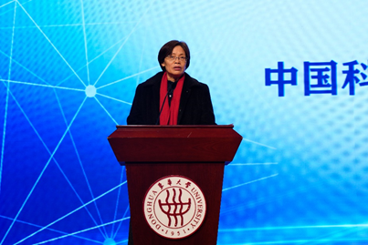 中国科学院院士、纤维材料改性国家重点实验室主任、材料学院院长朱美芳致辞