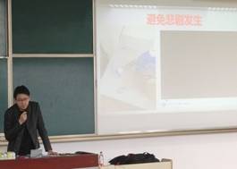接下来保卫处消防安全科的王立军老师以校园消防安全隐患和火灾实例为主线,图文并茂进行安全知识的讲解。从违章电器的禁止使用到实验室护目镜、防护服的正确穿戴,从日常消防隐患到校园火灾发生,从灭火器材的使用到逃生自救的时机等多方面全方位对校园消防安全事项做了详细讲解。与会人员表示,通过此次系统的安全教育活动,全面提升了学生自身安全防护意识,增加安全知识储备,便于大家在日常学习生活中能够随时发现安全隐患并进行及时处理。