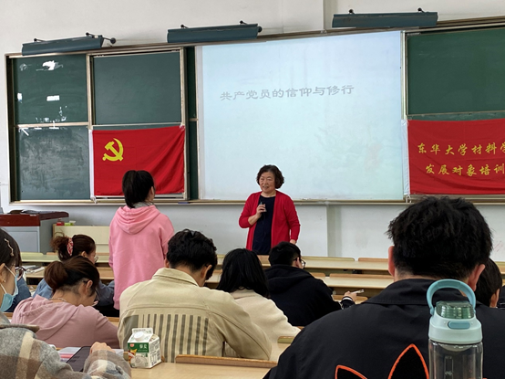 4月20日下午,材料学院党校邀请学校关工委讲师团丁霞萍作题为“共产党员的信仰与修行”专题党课,学院全体发展对象参加党课学习。