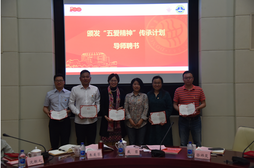 会上还举行了材料学院“五爱精神”传承计划启动仪式,传承计划以提升青年教师坚定理想信念、厚植爱国情怀、涵养高尚师德、提升为党育人、为国育才能力为根本目标,选聘关工委老同志、在职党员、干部、骨干教师担任青年青年教师导师,充分发挥“传帮带”作用,助力青年教师成长发展。首批导师共计24名,其中退休老同志16名,在职教师8名,将与63名青年教职工进行结对。党委教师工作部副部长骆祎岚为在职教师导师颁发聘书,戴蓉、朱美芳为退休老同志颁发聘书。