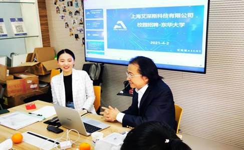 招聘活动中,松江区人才服务中心负责人结合松江区悠久的历史和发展现状,介绍了关于落户、人才公寓、人才租房补贴、优秀青年大学生激励等毕业班学生关注的人才政策。上海艾深斯科技有限公司负责人通过宣讲和产品实物展示相结合的方式全面介绍了公司概况、研发领域、发展愿景及招聘需求。两名校友代表结合个人发展情况与参会学生进行了深入交流。宣讲会后,与会20余名同学分组进行了现场面试。
