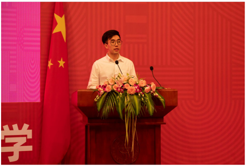 材硕206班张彤作为在校生代表为全体毕业生送上祝福,祝愿毕业生带着学术的智慧、生活的理想,踏上新的征程,开启人生新篇章。