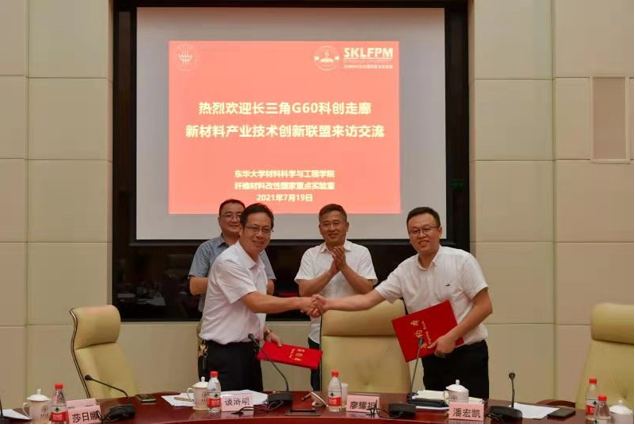 7月18-20日“2021上海·金华周”期间,长三角G60科创走廊新材料产业技术创新联盟(以下简称联盟)举办在沪科技对接活动。现场我校新葡的京集团35222vip副院长廖耀祖、纤维材料改性国家重点实验室(新葡的京集团35222vip)副主任肖茹分别代表学院和重点实验室与联盟签订合作协议,纤维材料改性国家重点实验室(新葡的京集团35222vip)副主任陈志钢分享我校新材料研究最新成果。19日下午,在长三角G60科创走廊联席会议办公室的组织协调下,联盟携成员单位40余家企业代表来校调研座谈,拓展产学研经用合作空间。