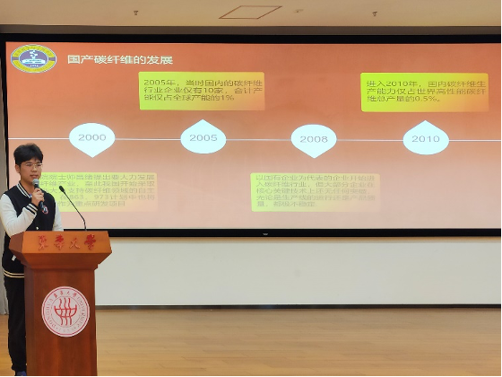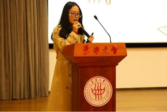 围绕活动主题,同学们还联系实际,以多种形式分享交流了传承东华精神的担当与实践。党员代表刘雨欣分享了大学四年的收获与体会,希望同学们明确目标、保持积极向上心态,为了梦想不断追寻、拼搏。刚刚结束第四届中国国际进口博览会志愿服务的“小叶子”代表,2019级本科生颜赛、胡雅雯分别交流了参与进博会志愿服务的体会,希望更多同学积极参与实践,在实践中坚定理想信念、践行初心使命。纤维材料改性国家重点实验室学生讲解团成员讲述了学科发展历程以及学科奠基人钱宝钧先生“不为一己求安乐、愿做别人嫁衣裳”的奉献精神和高尚品格。