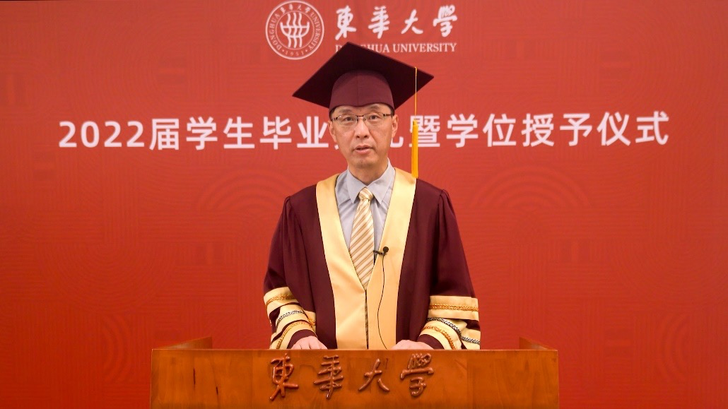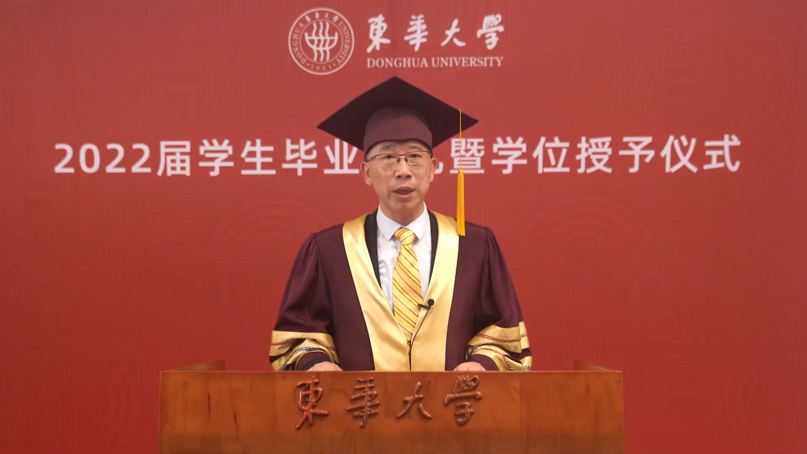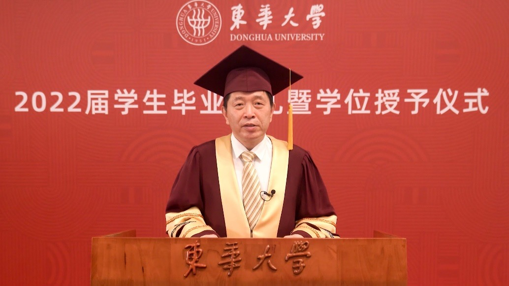 在毕业生即将离开校园奔向社会这个人生的关键时刻,材料学院院长、中国科学院院士、纤维材料改性国家重点实验室主任朱美芳以“踔厉奋发 逐梦青春”为题,为2022届毕业生送上毕业寄语,并提出三点希望:希望材料学子能胸怀祖国,把个人发展与国家战略需求同向同行,把炽热的爱国热情转化为报效祖国、服务人民的实际行动,践行“请党放心、强国有我”的青春誓言;希望材料学子能够虚心学习、勇于探索,立志投身国家重点行业建功立业,把所学用于解决实际问题,从艰苦奋斗中获得知识和力量,攻坚克难,迎难而上,用自己的奋斗担当谱写时代的最强音;希望材料学子能够锐意创新、开拓进取,努力成为行业骨干、青年先锋,让理想信念在创业奋斗中升华,让青春在创新创造中闪光。最后,朱美芳院士希望毕业生始终牢记党的教诲,立志民族复兴,不负韶华,不负时代,不负人民,在青春的赛道上奋力奔跑,争取跑出当代青年的最好成绩!