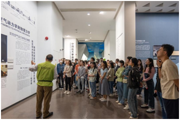 进入展馆,一枚东风二号甲型导弹实体陈列在眼前,它是一种实战化的中程弹道导弹,也是我国第一代中程地地弹道导,1966年钱学森主持我国首次导弹与原子弹的“两弹结合”飞行试验获得成功,使用的就是该型号的导弹。伴随着大量文献实物和生动场景,通过中国航天事业奠基人、科学技术前沿的开拓者、人民科学家风范和战略科学家的成功之道等四个篇章,同学们全面感受了钱学森的爱国情怀、科研品质和精神境界。序厅里4015页“钱学森手稿”组合而成的倒三角艺术装置,如同一朵蓬勃的蘑菇云在空中升腾,仿佛正在讲述钱学森主持“两弹结合”试验获得成功所历经的4015个日日夜夜。“我的事业在中国,我的成就在中国,我的归宿在中国”“我将竭尽努力,和中国人民一道,建设自己的国家,使我的同胞能过上有尊严的幸福生活”,一句句质朴的话语背后,凝结着一代代科学家矢志报国的爱国情怀、不屈不挠的奋斗精神和孜孜以求的创新精神,正是这强大的精神力量,让我国“从0到1”的原始创新能力实现质的飞跃,在许多领域实现了由跟跑到并跑再到领跑的跨越。
