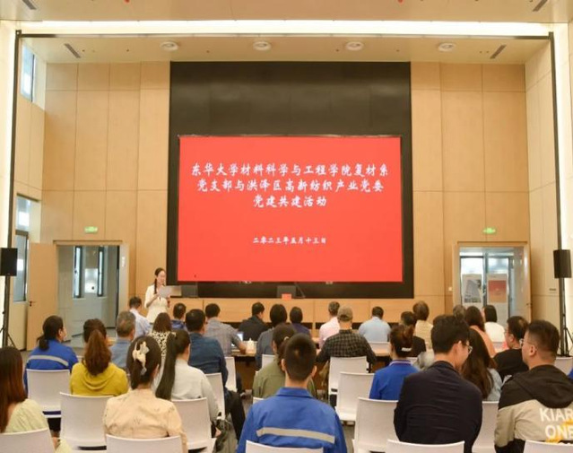 洪泽区高新纺织产业党委对新葡的京集团35222vip党委书记李斌荣一行的到来表达了热烈的欢迎。新葡的京集团35222vip复材系支部书记陈惠芳以《学思想、强党性、重实践、建新功》的党课为本次活动拉开了序幕。学院教授吕永根、陈烨、副教授张晶晶、新葡的京集团35222vip高性能碳纤维及其复合材料研究课题组刘勇副教授分别讲授《从碳纤维的结构性能到中间相沥青碳纤维的开发》《改革开放与纤维制造绿色发展》《纤维基储能关键材料的构建及应用研究》《高性能碳纤维复合材料设计设备技术》等课题,从材料专业的视角,对纺织产业的高新技术、发展前景等进行全方位的解读,