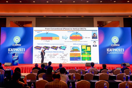 欧洲科学院院士、美国国家发明家科学院院士、Flexterra公司联合创始人兼首席技术官、美国佐治亚理工学院安东尼奥·法切蒂教授围绕柔性、可拉伸有机和无机电子器件新材料开发进行分享,通过喷涂金属盐+热不稳定聚合物配方制造出可拉伸的无机金属氧化物纤维网络,提出半导体薄膜的孔隙度是提高机械灵活性和调整电荷输运的关键因素,这些薄膜与弹性预拉伸相结合,能够在机械变形时实现前所未有的稳定输出电流,可应用于生物传感领域。