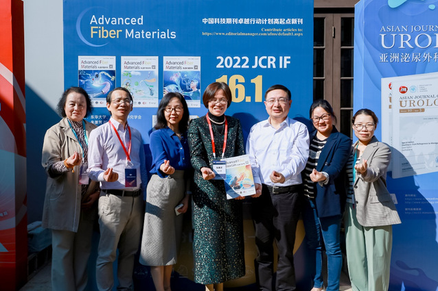 与朱美芳院士同时荣获此项殊荣的还有《分子植物(英文)》主编韩斌院士、《核技术(英文)》主编马余刚院士、《地下空间(英文)》主编朱合华院士、《分子细胞(英文)》主编李党生研究员等为上海乃至我国先进期刊作出突出贡献的代表们。朱美芳院士从事纤维材料的复合化、功能化、智能化和高性能化研究工作,是纤维材料研究领域最有影响力的学术带头人之一。于2019年创办《先进纤维材料(英文)》(Advanced Fiber Materials)并担任主编,期刊于2021年入选中国科技期刊卓越行动计划高起点新刊项目,2022年获首个SCI影响因子12.958,2023年上升为16.1。发起并连续举办11届“先进纤维与聚合物材料国际会议”,促进了期刊发展、学科建设和学术交流的融合。
