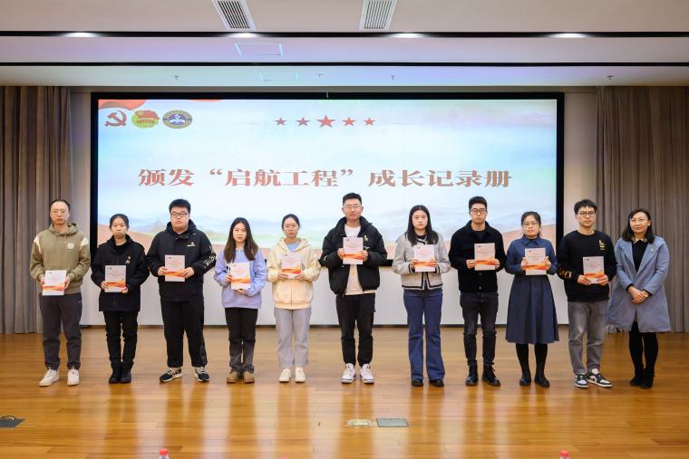 学院党委副书记莎日娜为学生党员颁发“启航工程”成长记录册。材料222硕郭明法、材料213硕王一诺分别代表学生党支部书记、预备党员作交流发言,表示将以参与“启航工程”为契机,持续锻炼党性、坚定理想信念、提升政治素养、践行初心使命。