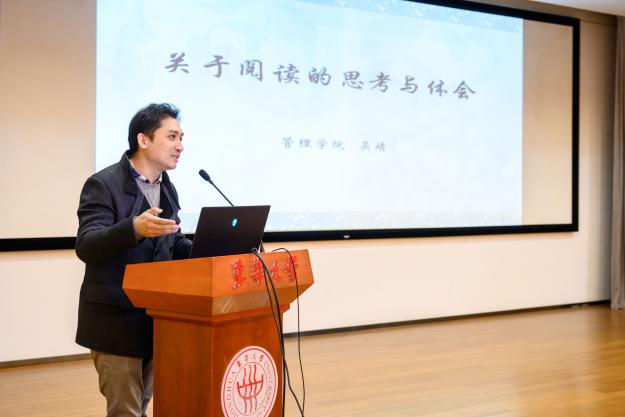 启动仪式结束后,材易书社首期“经典·悦读”分享活动拉开帷幕。管理学院吴靖以《关于阅读的思考和体会》为题,从“读好书、挑好书”“训练阅读思维”“数字化阅读趋势”三个维度为同学们带来了一场引人入胜的阅读思考课,鼓励大家爱上阅读,形成终身阅读的良好习惯。书社首批学员代表惠明伟说到,身为一名理工科学生的自己,以前难以融入阅读之中,今天这堂课使之意识到了阅读对于思维训练的重要性,并表示今后也要运用这一方式让自己多读书、会读书。