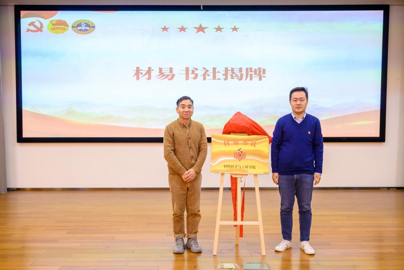作为预备党员“启航工程”的重要环节,学院积极整合党政班子、关工委老同志、专业教师、辅导员等多方力量,依托“一站式”学生社区建设,以学院研究生主要居住的4号宿舍楼为样板打造“材易书社·经典悦读团”,引导学生在近在咫尺的社区空间里“多读书、读好书”,预备党员接受社区和学院党支部双重考察。党委宣传部高坤、学生处叶磊共同为“材易书社”揭牌。
