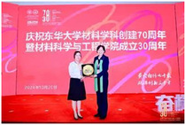 会上,朱美芳宣读校友及社会各界贺词、贺信。沈阳化工大学副校长秦高梧、复旦大学材料系主任俞燕蕾代表兄弟院系赠礼,朱美芳代表学院受礼。