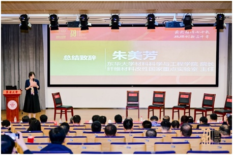 最后,朱美芳进行了总结致辞,对今天所有嘉宾和校友的到来、精彩的汇报与讨论表达由衷感谢,向所有支持材料学院基金的企业、个人表示真挚谢意。并相信本次论坛的顺利召开对中国材料产业发展能够起到积极的推进作用。